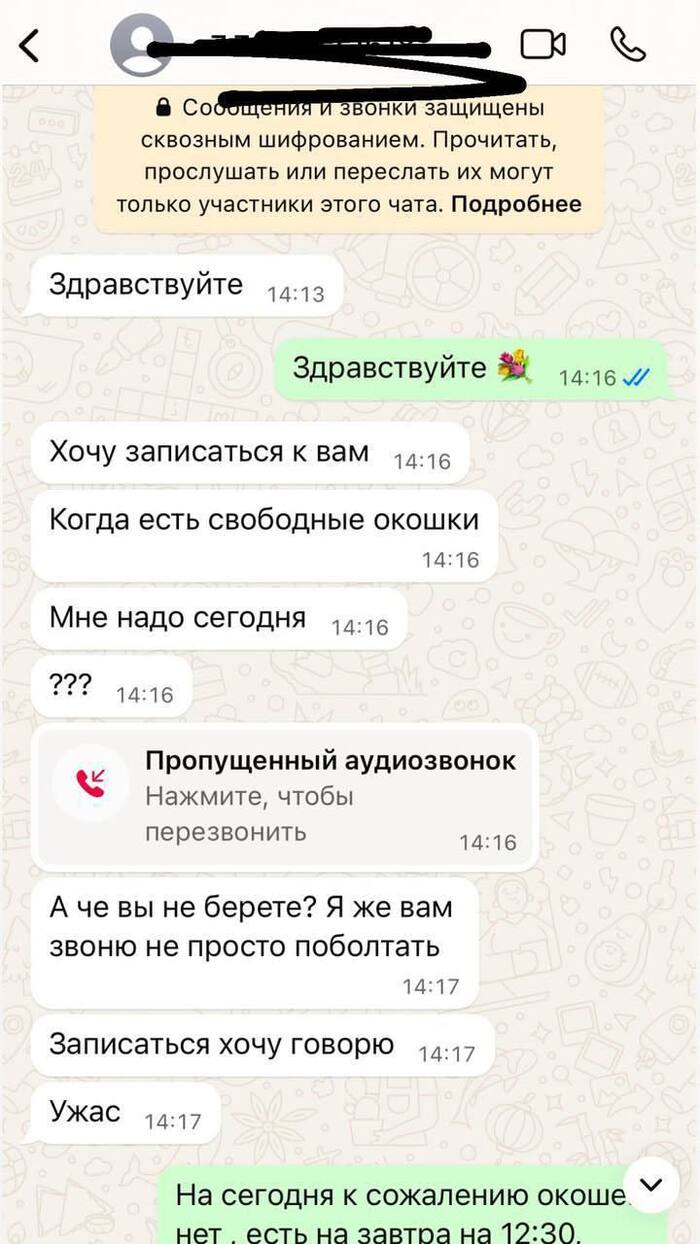 5. Желание разобраться с запросом здесь же по переписке. Сюда же запись голосовых сообщений (не слушаю и не отвечаю на них, прошу продублировать текстом). Психолог не имеет возможности решить вашу проблему сейчас же. А честно говоря, ещё и не очень хочет работать бесплатно. Задача первой переписки - запись на консультацию и всё.