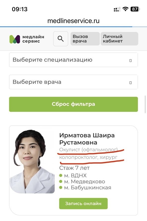 Что у нас есть: врач, работающий в частной клинике, косметологом. По своим убеждением принимает только женщин, в частной клинике, за деньги.