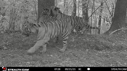 Факт наличия у тигрицы молодого поколения материалами фотоловушек не подтверждался на протяжении целого года. И вот на снимках с фотоловушек от 21 сентября 2021 года тигрица Тала впервые отметилась с двумя годовалыми котятами.