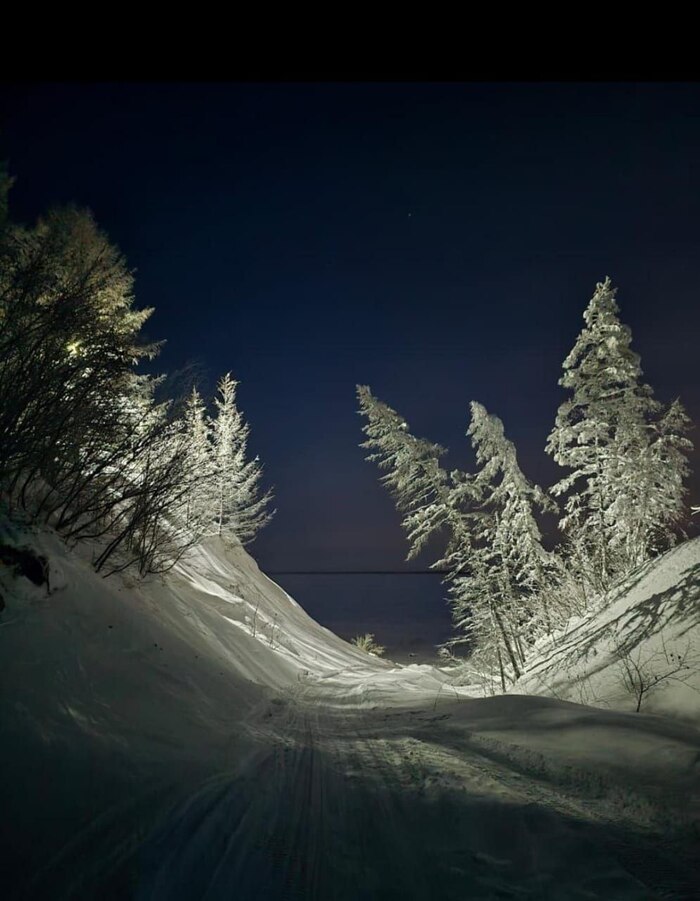 Снежные шапки на елях мерцали в призрачном свете, а иней на ветвях искрился, будто усыпан звёздной пылью. Казалось, сама зима затаила дыхание, любуясь этим небесным чудом.