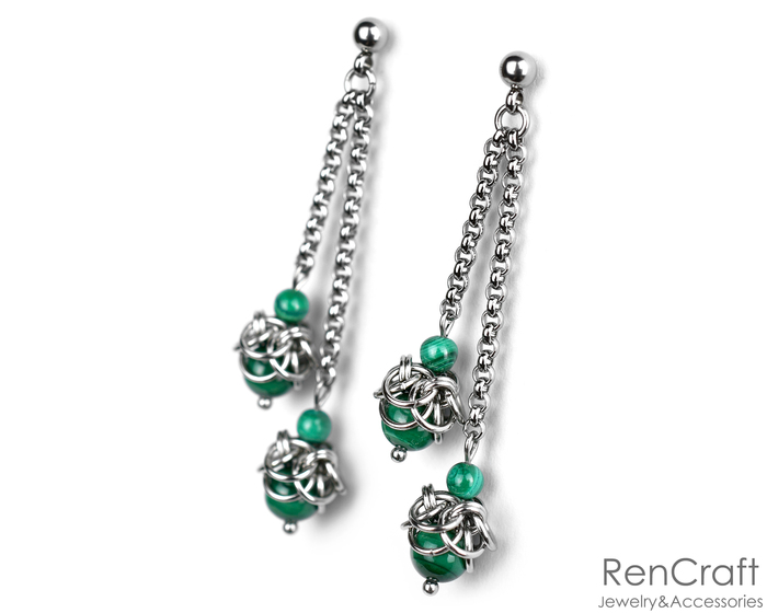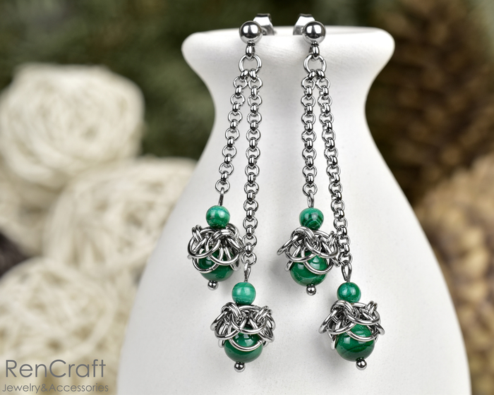 И напоследок - серьги, да, снова с малахитом) Нравится мне этот камень