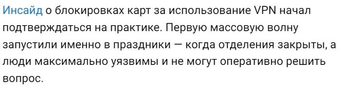 В Сети начал активно распространяться тревожный слух: якобы в России начались массовые блокировки банковских карт и счетов исключительно за использование VPN-сервисов. Авторы сообщений ссылаются на «анонимные источники» и «знакомых в правительстве».