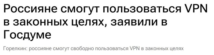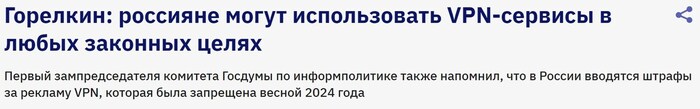 Аналогичную позицию выразил первый заместитель председателя комитета Госдумы по информационной политике Антон Горелкин: «Граждане смогут свободно использовать VPN в любых законных целях». А вот за рекламу VPN вводятся штрафы, запрет был введен весной 2024 года.