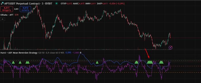который уже не первый раз помогает найти вход и намекает о возврате цены к своей средней. Поэтому было решено его использовать как ранний вход, а остальной объем делить и кидать лимитками на уровни.