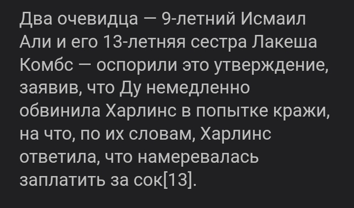 34 года назад сегодня Латашу Харлинс, 15 лет, застрелила 49-летняя кореянка, владелица магазина Сун Джа Ду, из-за бутылки апельсинового сока.