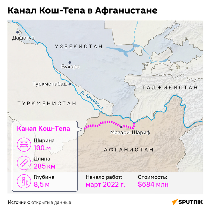 Канал берёт начало из Амударьи в уезде Калдар провинции Балх.