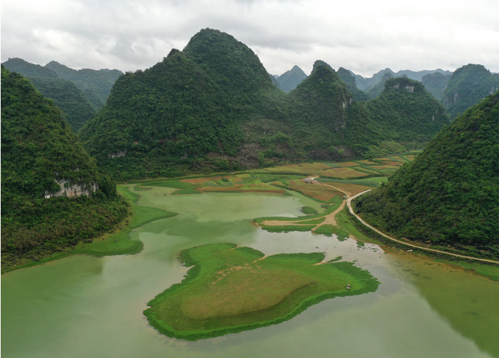 С наступлением сухого сезона в Китае практически пересохло живописное озеро Ган Ван, расположенное в уезде Лунъань городского округа Наньнин.