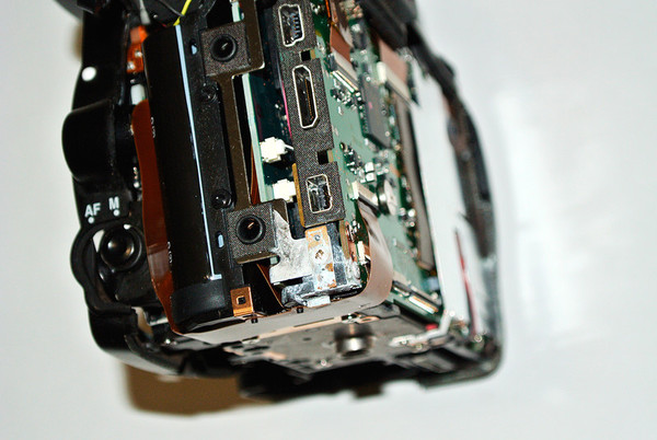 Начал разбирать Nikon. После Canon у меня просто разрыв шаблона. Все собрано не на металлической раме, а на пластике. Внешние металлические детали корпуса прикручены саморезами в пластик. Даже крепление байонета пластиковое. Жесть...