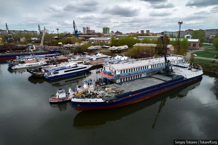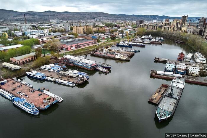 Красноярский судоремонтный центр Енисейского речного пароходства с высоты