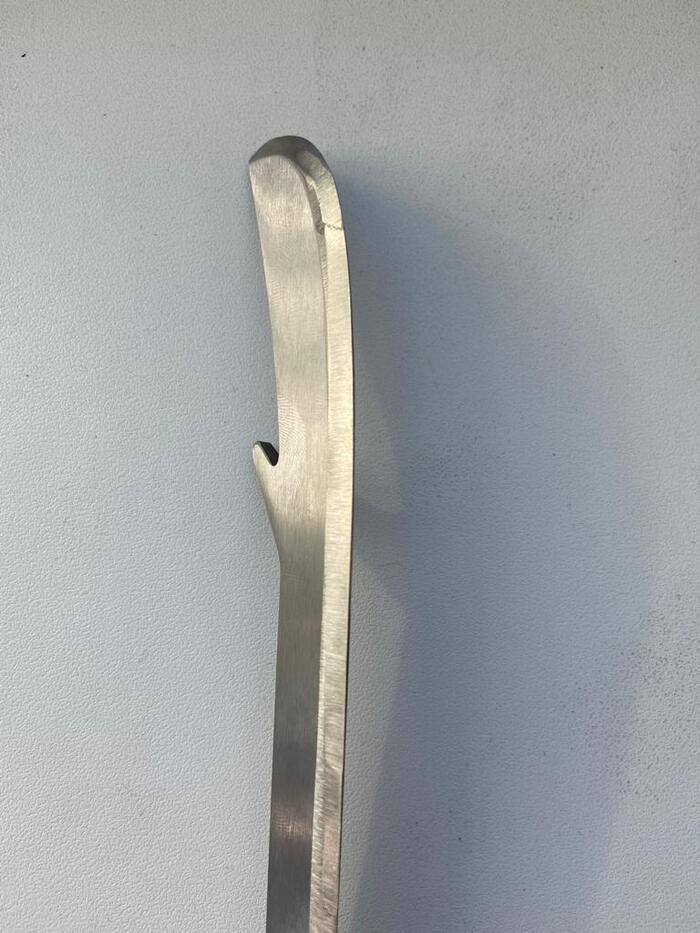 Так он выглядел до обработки металла. Уже со снятыми фасками - с заводскими углами он неудобен в руке без древка.
