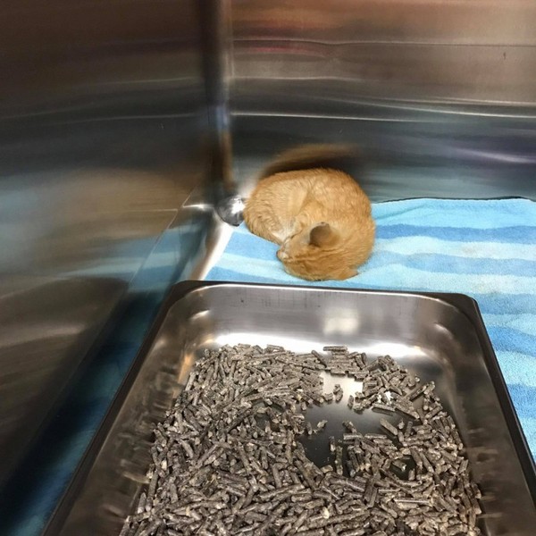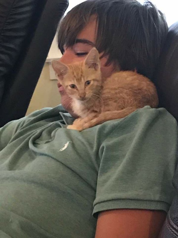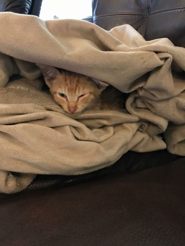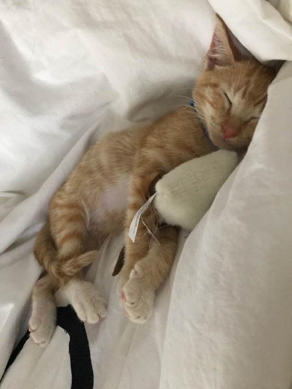 Семья Джеси забрала найденного котенка с собой и позже привезла его в ветклинику. Там котенка осмотрели. Ему оказалось не более шести недель, ему сделали рентгенографию грудной клетки, чтобы проверить не наглотался ли он воды, и взяли анализ крови. Оказалось, что кроме нескольких царапин, котенок был в хорошей форме.