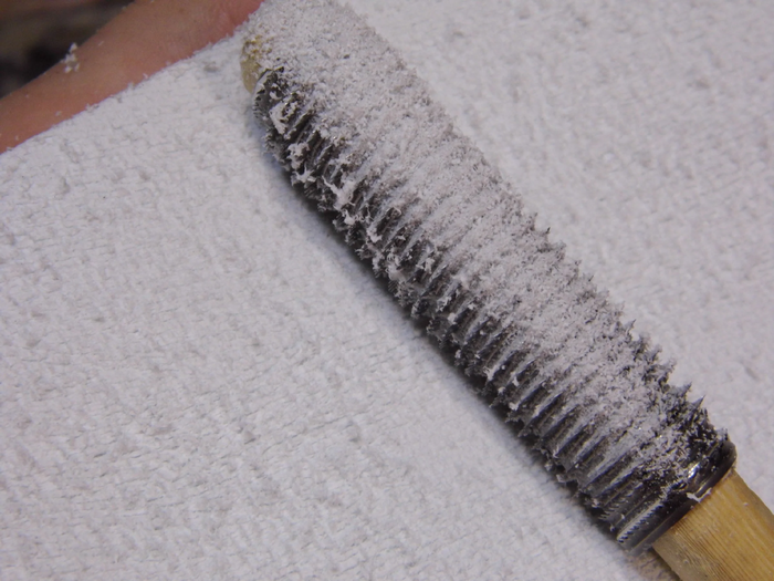 Так вот. Она реально цепляет! (И не отпускает, хе-хе). Вот, прямо за ней микропористая резина. А эта пыль - за пару движений. А учитывая, что я хочу, чтобы все интересующиеся смогли сами делать хотя бы простейшие операции по ремонту обуви в любой точке земного шара - настоятельно рекомендую к приобретению. Жду подходящую пару - возможно, получится обойтись без зачистной машины вовсе. К тому времени, когда придут к вам, у меня уже будет клей. Посмотрим дальше.