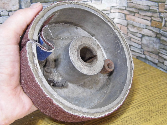 Но! В ремонте обуви обычно материалы зачищаются. То есть они априори без жировых пятен. В толще материала жира нет. Для чего же тогда обезжиривать полиуретан перед зачисткой? А для того, чтобы убрать остатки силиконовой смазки, которой обрабатываются пресс-формы. По ней наждачка проскальзывает и процесс идёт медленнее. Я обычно сразу обезжириваю с двух сторон: когда-никогда, а тронешь рукой одну поверхность, а потом схватишься за другую и всё, перечищаем. Наждачный барабан: