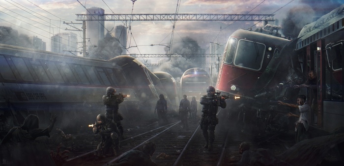 Звон и грохот стрельбы. Вой зомбяк, что остервенело прут с разных сторон. Крик заживо раздираемого челюстями мертвяков несчастного. Хрип и стоны умирающего от огнестрельного, что совсем и неслышен в общем шуме. Свежая кровь подстреленных людей перемешивается с гнилой плотью трупаков.