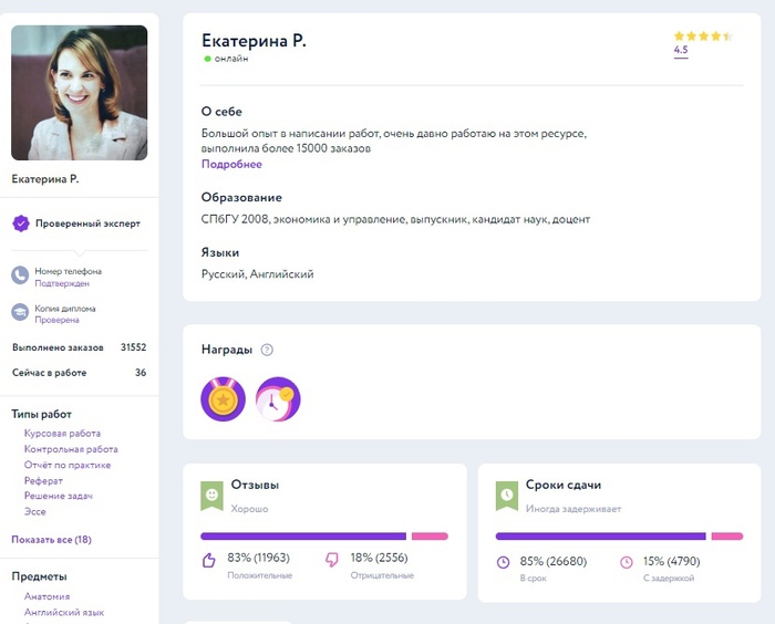 Ресурс продвигает агентства, которые пишут много и за меньшие деньги. Например, вот один из самых популярных аккаунтов контрагента на Авторе 24