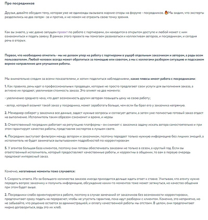 Что значит продвигает? Как только вы создали свой заказ, приоритетный доступ к нему получает аккредитованный партнер. При этом, то что это - агентство, заказчик не знает, только если не изучит историю заказов, где работы по праву, языкознанию, технологии производства, менеджменту и литературе, будут идти вместе рука об руку. При этом конечно на ресурсе есть и нормальные исполнители, но после новой политики повышения цен они по факту уже все ушли, а вот агентства, которым по сути нужен только трафик, стали получать еще больше заказов.