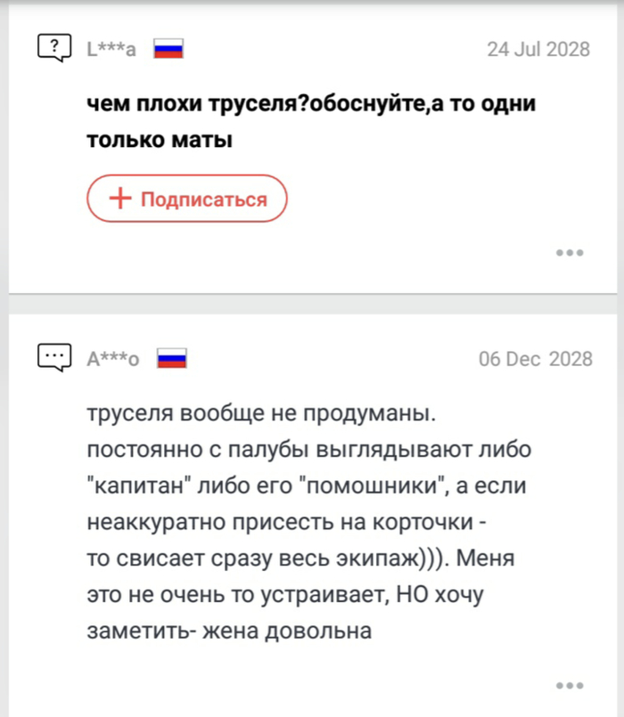 Приличный отзыв на труселя