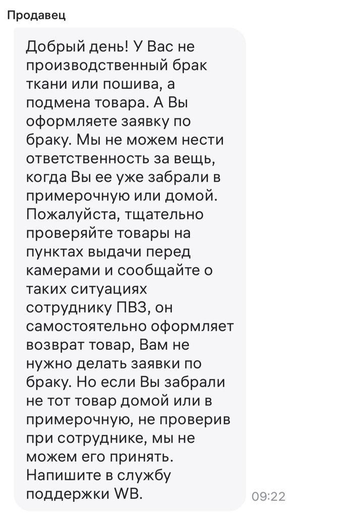Ваша критика ответа Ozon и ваши аргументы: