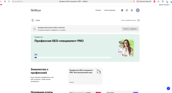 Акт 1: Начало, или «Как я стала SEO-гением за 62 566 рублей» Апрель 2022. Поймала волну саморазвития, увидела красивый курс «SEO-специалист» у Skillbox. Через реферальную ссылку друга (спасибо, друг!) цена стала «всего» 62 566 рублей. Оформила в кредит от Сбера — потому что что может быть лучше, чем платить за обучение с процентами? Первое время — эйфория: лекции, тетрадочка, практика. Даже тесты с куратором обсуждали. Я уже видела себя гуру поисковиков. Но, как водится, за красивой обложкой скрывался сюрприз.