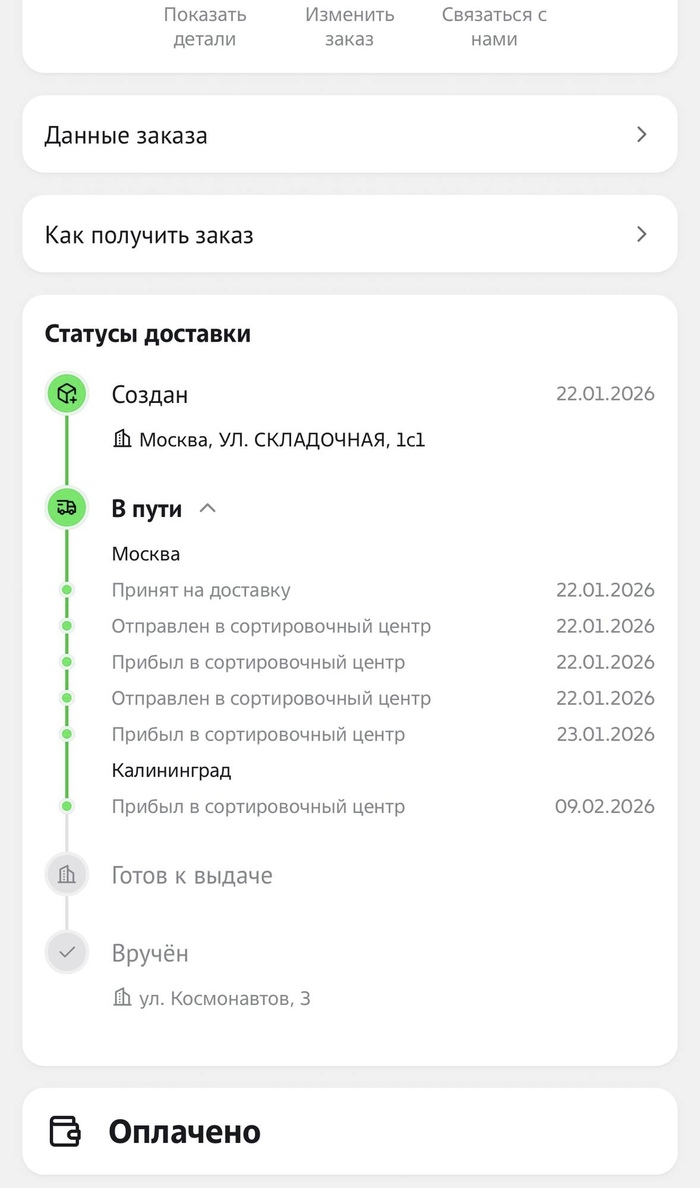 И удивительно но ФАКТ спустя пол часа как я написал досудебную претензию гитара начала движение. Совпадение ? Письмо было отправлено 11 января 2026 г. в 10:48 а заказ отправили на сортировочный терминал 11.01.26, 11:34