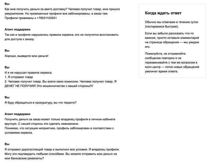 Стандартные отписки. Кстати, в самом первом сообщении, которое мне написала поддержка в ответ на жалобу, сказано, что сроки рассмотрения подобных ситуаций НЕ РЕГЛАМЕНТИРОВАНЫ, а значит, я могу прождать еще месяц, а могу и год.