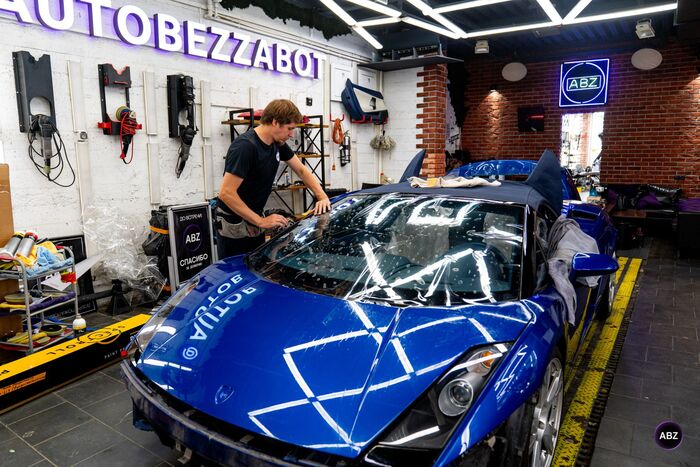 Сначала мы отполировали кузов — аккуратно, без фанатизма, чтобы соседние машины на парковке не начали комплексовать, а лак не истончился в папиросную бумагу. Потом обернули его в глянцевую полиуретановую плёнку — своего рода бронежилет, только для красоты и защиты от камешков и прочей нечисти.