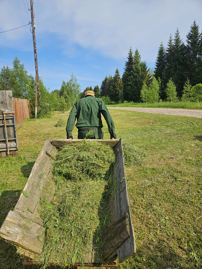 В перерывах я помогала мужу собирать траву. Т.к. современными граблями мы еще не разжились ,то я достала старые. Сначала они вызывали во мне опасения смогу ли я вообще ими работать? По факту я не хочу никакие другие. Это самые офигенные и удобные грабли. Легкие, удобные, широкие, хорошо сгребающие траву, несмотря на редкие зубья. Теперь это моя любовь.
