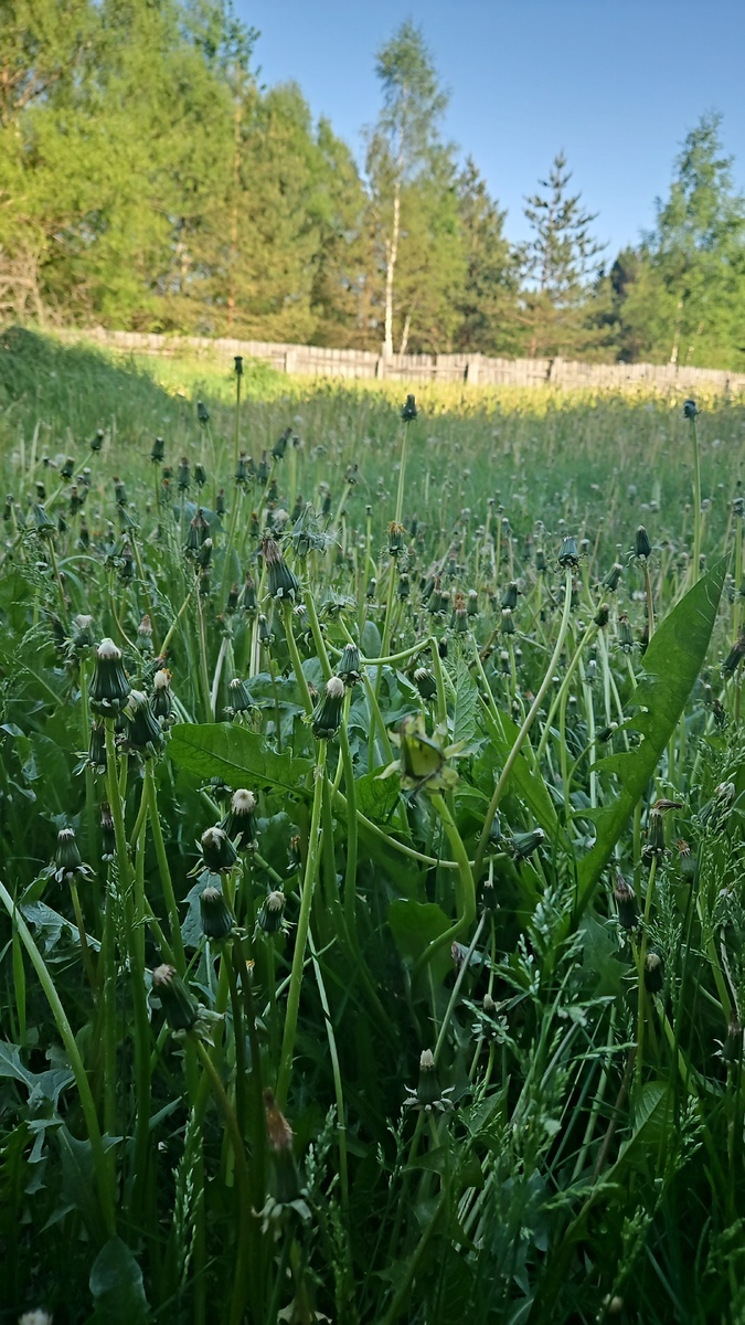Но на следующий день приступить не получилось по причине не летной по мнению соседа погоды. Было слишком жарко. Муж пожал плечами и ушел на другую войну. Войну с одуванчиками. Когда-то мы чуть не купили участок в 60 с лишним соток? Ахаха. СЛАВА БОГУ. Ибо и 15 соток вполне достаточно. Проблема была еще и в том, что последние пару лет нормально участок не выкашивался кроме небольшого пятачка вокруг дома. Потому трава там разрослась буйная, жирная и по осени превращающаяся в сухостой. Мой доблестный супруг, вооружившись самой зверской леской и триммером, пропал в дебрях. И победил.