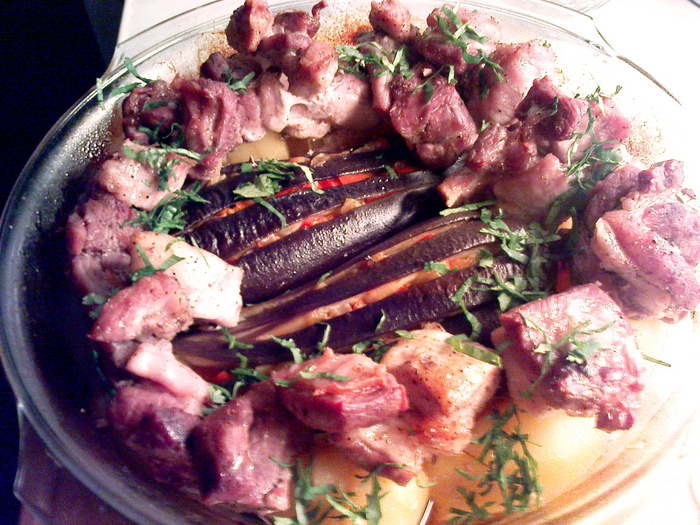 Картошка приобретает мягкую консистенцию, сродни топлёному маслу, мясо нежнейшее, а баклажаны невероятно вкусные. Со временем понимаешь, что баклажанов надо брать больше!