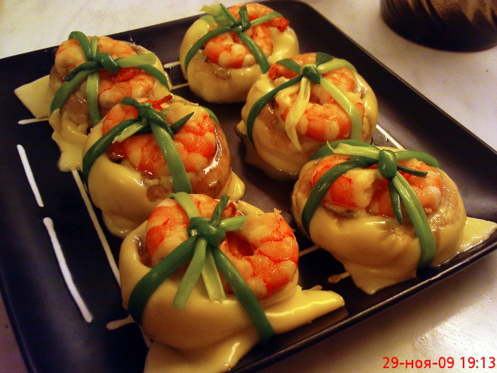 Шляпки шампиньонов с креветками