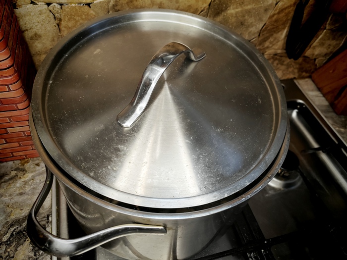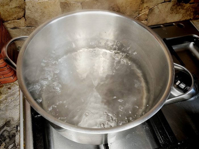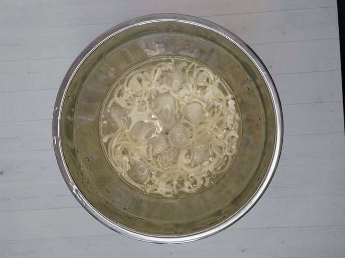 Первое, что надо подготовить — вода. Много холодной воды. Не тёпленькой, комнатной, по летней жаре до +22 ℃ доходящей, а именно что из холодильника, можно даже лёд в кастрюльку накидать — это весьма важный момент.