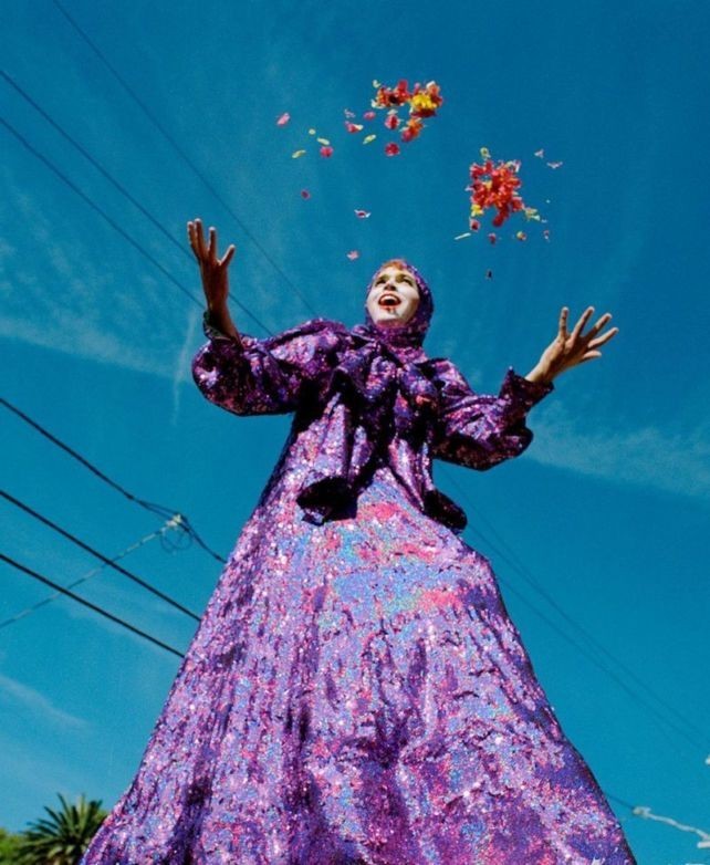 Модель Карен Элсон косплеит «большую» Эдди для американского Vogue: как известно из фильма, Эдди проводит большую часть времени лежа на кровати в окружении кошек.