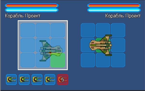 В настоящий момент работаю над мобильной игрой про космических наемников. Игрок - член корпорации наемников "Звездные Ангелы". Игра будет представлять собой пошаговые космические дуэли. Ход состоит из двух фаз - атаки и маневра. Во время фазы атаки игрок выбирает модуль для использования (вооружение, щитовой бустер, другое оборудование). А во время фазы маневра - игрок выбирает клетку смещения корабля, что бы попытаться увернуться от атаки противника.