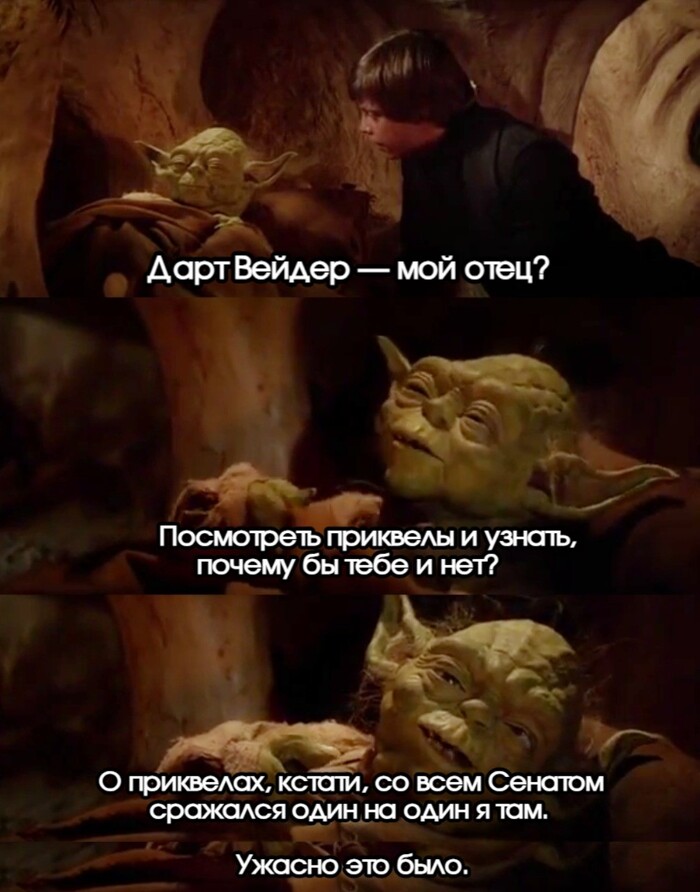 200 Skyscrew 26 дней назад Star Wars Предсмертное откровение Показать полностью 1 Картинка с текстом Мемы Star Wars Люк Скайуокер Йода Звездные войны VI: Возвращение джедая Звездные войны III: Месть ситхов 12 9 Ещё 0
