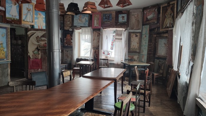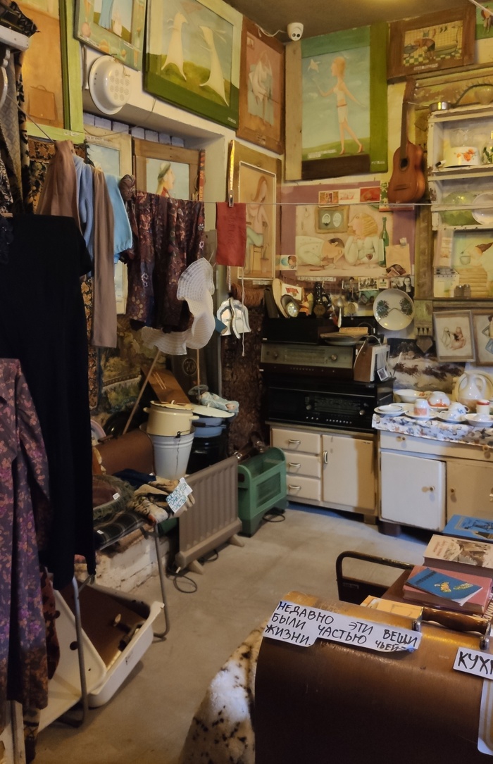На первом этаже есть зал с печью, от этого в доме тепло и пахнет как в деревне у бабушки, горящими дровами и травами, и зал с обстановкой из коммунальной квартиры времен СССР. Там действительно просто сборище старых вещей, жутко интересно выискивать то, что в детстве у тебя было или ты видел уже сломанным.