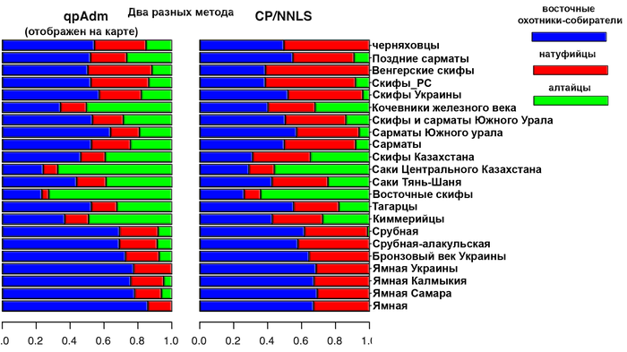 Кроме того, исследователи оценили вклад более древних групп в генофонд скифов и сарматов. Анализ показал, что люди из ямной культуры являются лучшими представителями населения, вносящего вклад в скифов и сарматов.