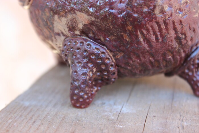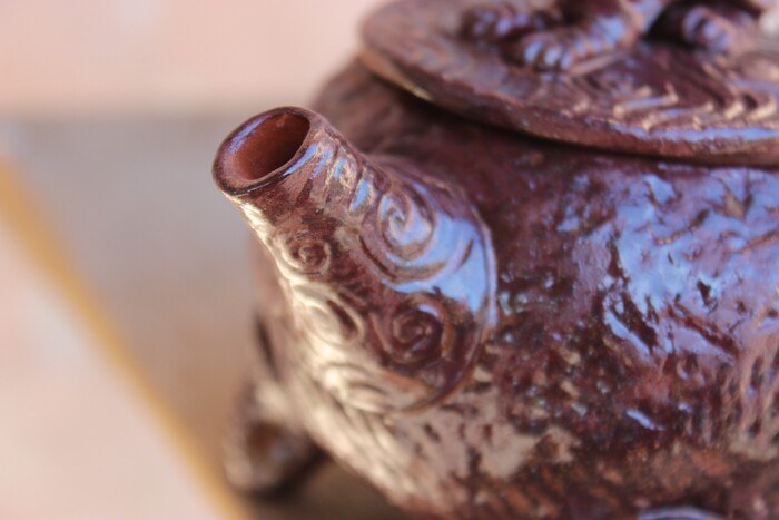 Новый чайник-малыш на 250 мл. Вылеплен из дикой глины и декорирован эффектарной глазурью "Магнетит". Обжиги 1000/1035 градусов. Размеры 14/10/14 см.