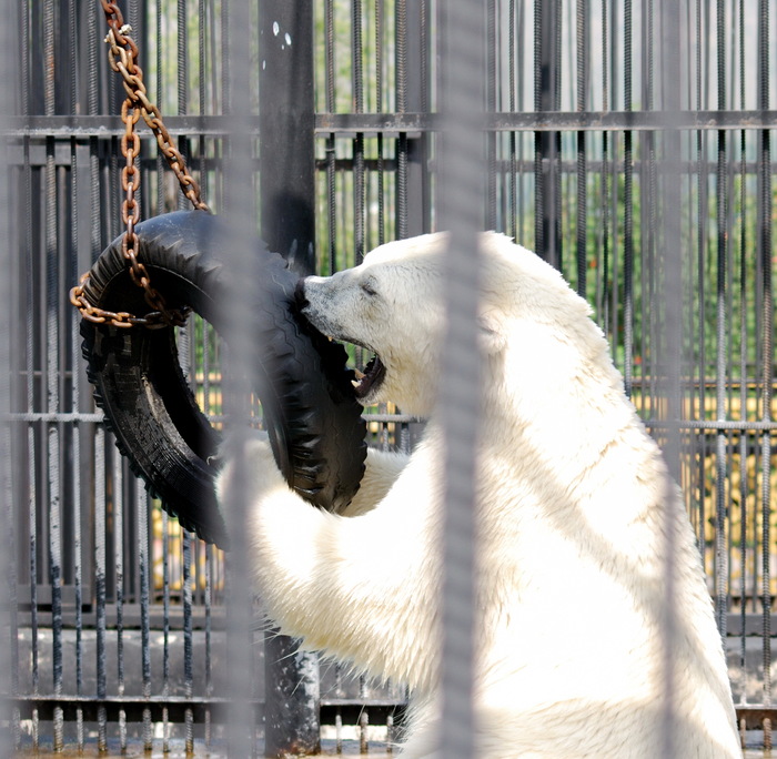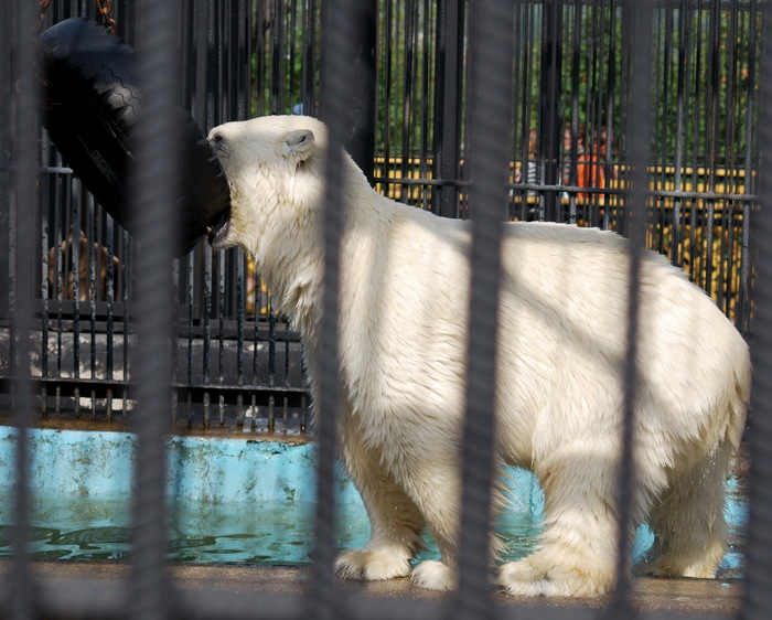 Удивило то что вокруг куча техники и шумно, но её это не остановило. Вспугнули возле мусорки