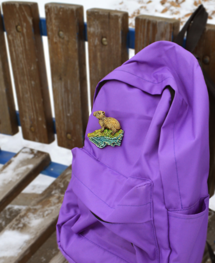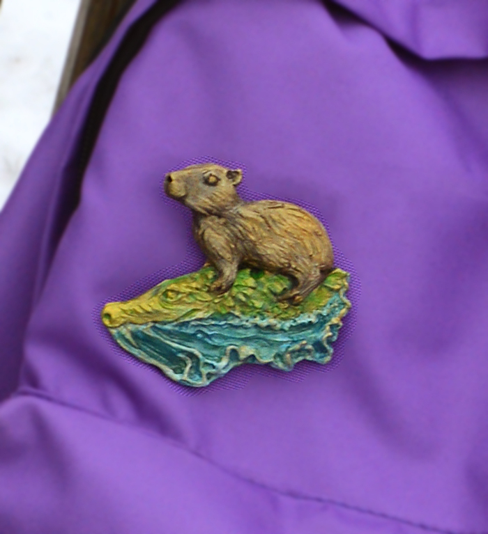 Значок - брошь "Капибара на крокодиле"