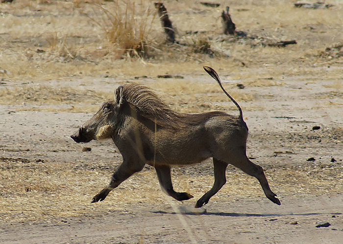 Даже спасаясь бегством от крупного хищника, бородавочник не опустит хвост – не пристало гордому свину ронять своё достоинство перед лицом опасности.
