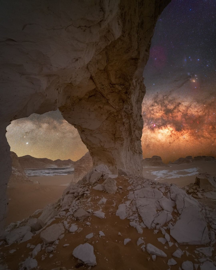 Бетельгейзе - ярко-оранжевый, красный сверхгигант. Ее теплый, огненный, "опасный" цвет сразу притягивает взгляд на фоне холодных бело-голубых звезд Ориона и Млечного Пути. Она выделяется контрастом.