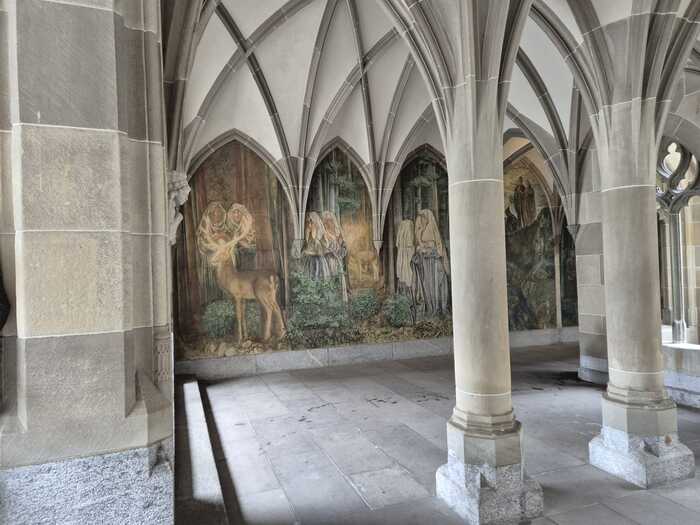 ### Что внутри и во дворе - **Внутренний двор** (Hof) — один из самых красивых в Швейцарии: аркады, фрески по стенам (в том числе большие исторические сцены), лестницы, статуи. Часто фотографируют именно его. - Некоторые залы открыты для посещения (например, Regierungsratsaal), но часто только с экскурсией.