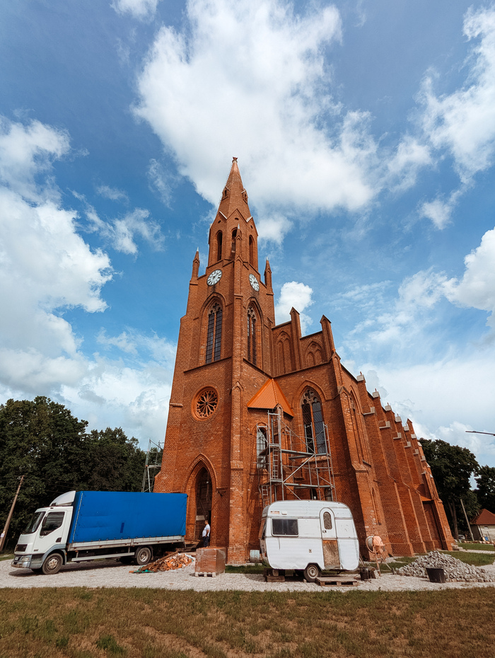 Но вот эта штука на самом верху, опутанная сетью лесов, одна из самых невероятных смотровых площадок в калининградской области, уж можете мне поверить.