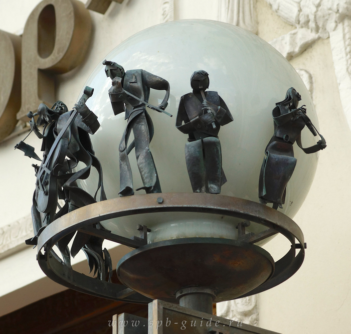 Над витриной магазина "Ноты. Северная лира" располагается уникальный светильник.