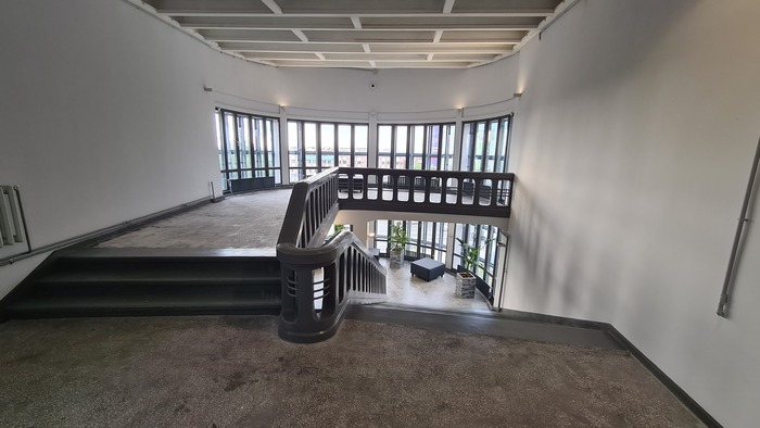 В ДК сохранились аутентичные двери-гармошки, выполняющие функцию зонирования помещений при проведении различных мероприятий. Обратите внимание на необычные люстры — это отсылка к химической промышленности Тольятти, которая также задала очень важный этап в развитии «старого города», так среди тольяттинцев принято называть Центральный район, который формировался чуть раньше Автозаводского — в 1950-60-х .
