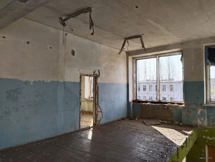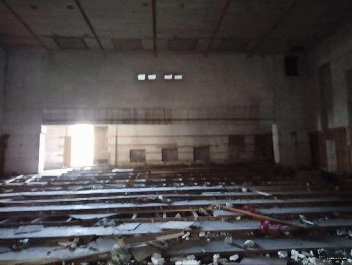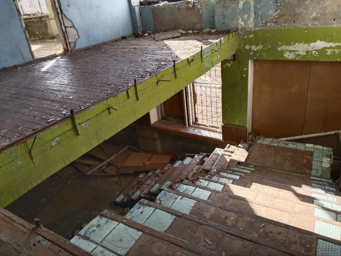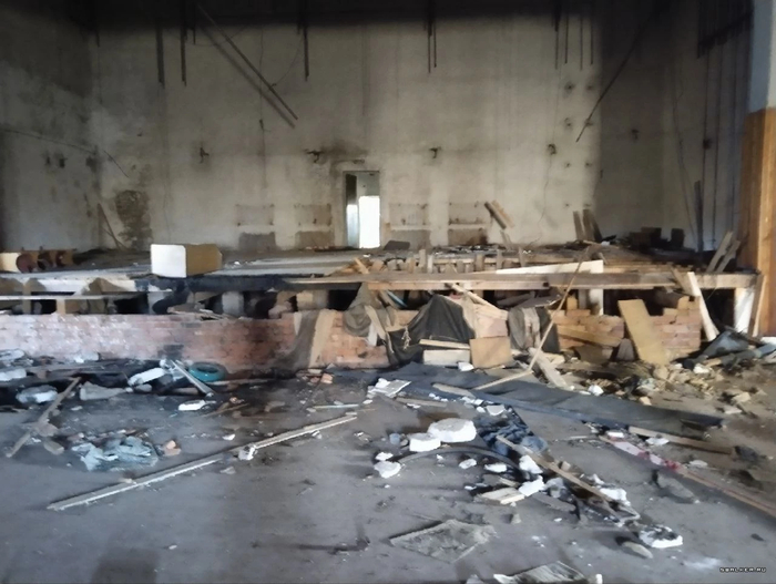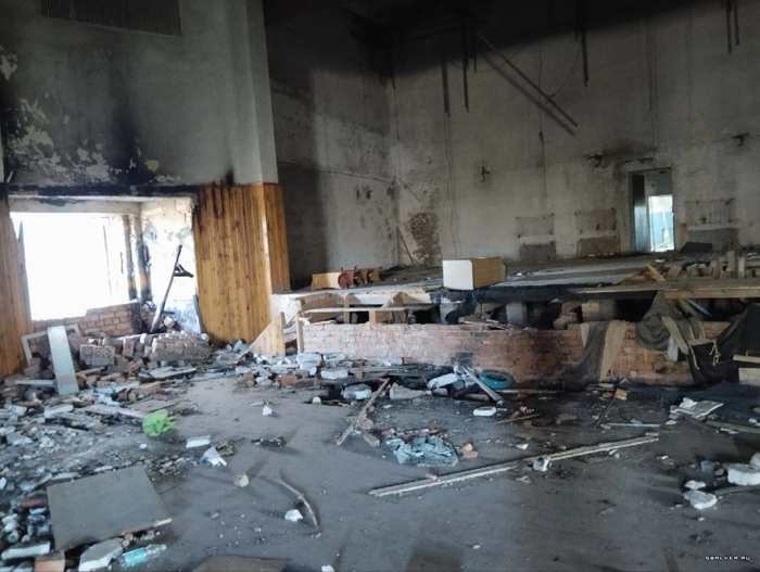 Залаз в здание довольно сложный — приходится пробираться по кирпичам и обломкам, осторожно выбирая путь, чтобы не провалиться. Внутри всё погружено в хаос: сломанная мебель, груды хлама и следы пребывания маргинальных групп.