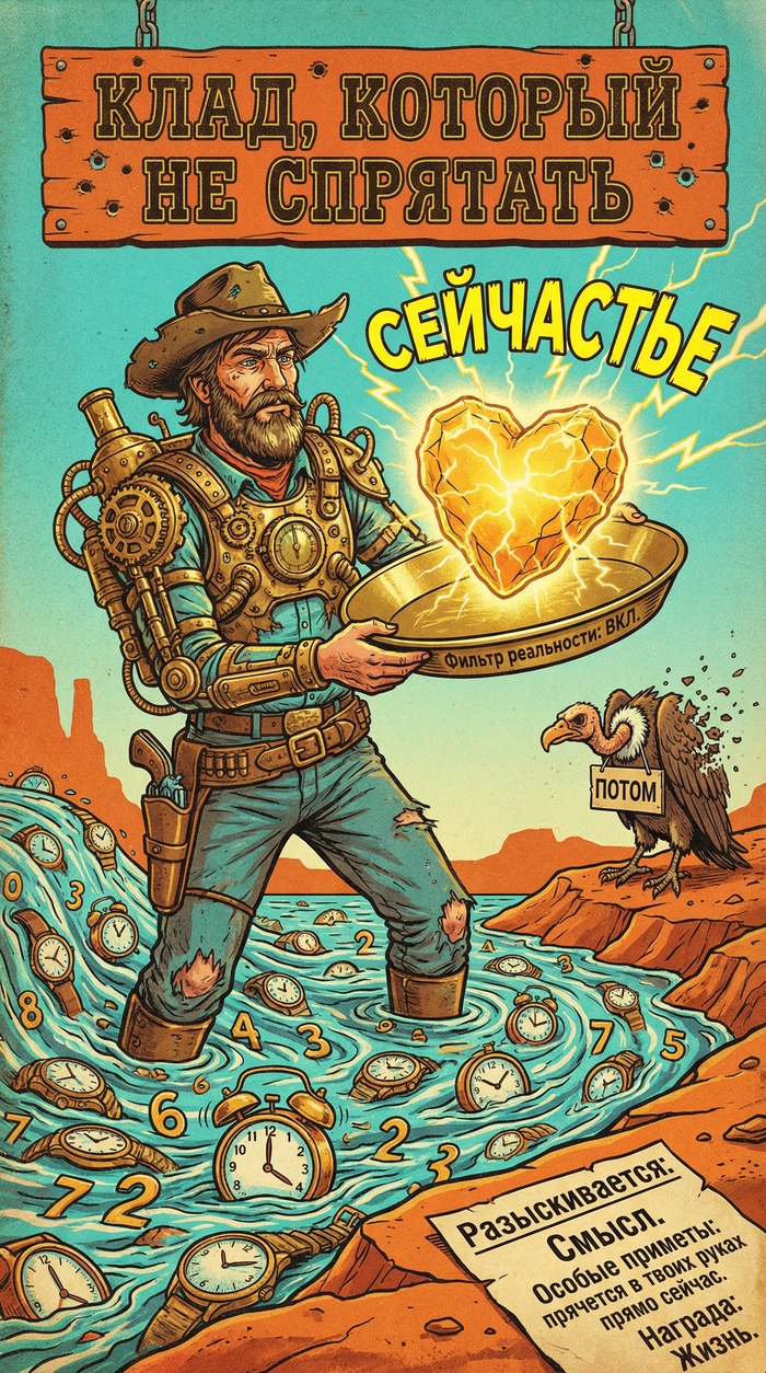 Ты — старатель. У тебя нет кирки, но есть мозг, хотя иногда кажется, что он превратился в заплесневелый хлеб. Ты стоишь по колено в этой мутной жиже, которую называют «будни». Часы тикают. Тик-так, тик-так — это звук лопаты, закапывающей тебя заживо.