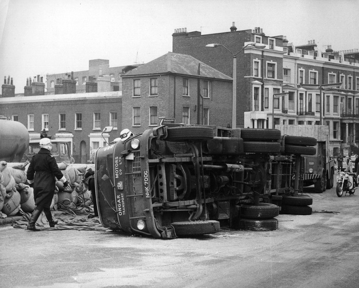 Подборка черно-белых ретро фотографий аварий на английских дорогах. Большей частью, снимки относятся к первой половине 20 века.