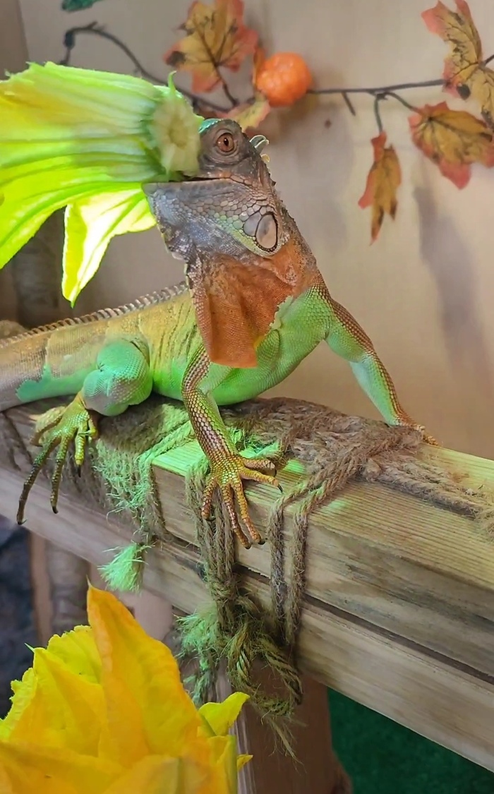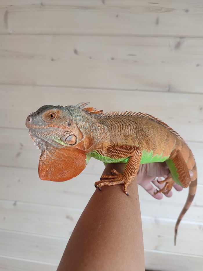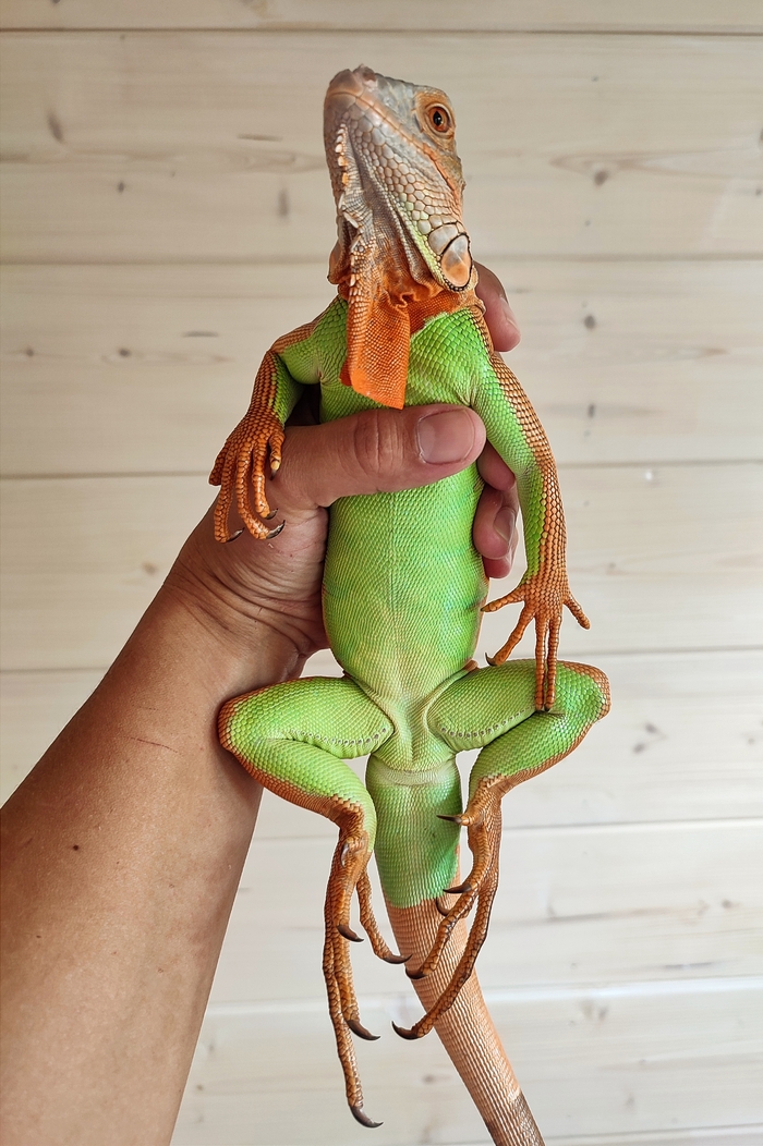 Зелёная игуана Шурик великолепен от кончиков пальцев до кончика хвоста