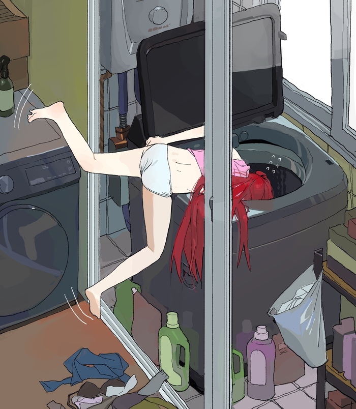Аниме Anime Art Девушки Прачечная Зеленый Сушилка Застрял Some1else45 Original Character It Is Wednesday My Dudes Игрушки Лягушонок Кермит Длиннопост